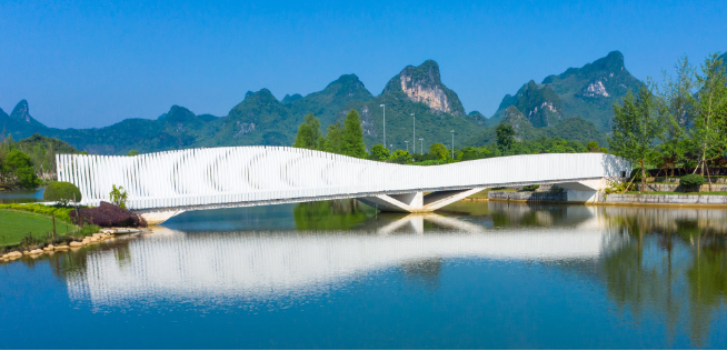 位于生活美學(xué)館旁,形態(tài)優(yōu)美典雅。白圭橋潔白如玉,水光瀲滟的折射下,橋體有玉的通透和水潤感,故以白圭命名。