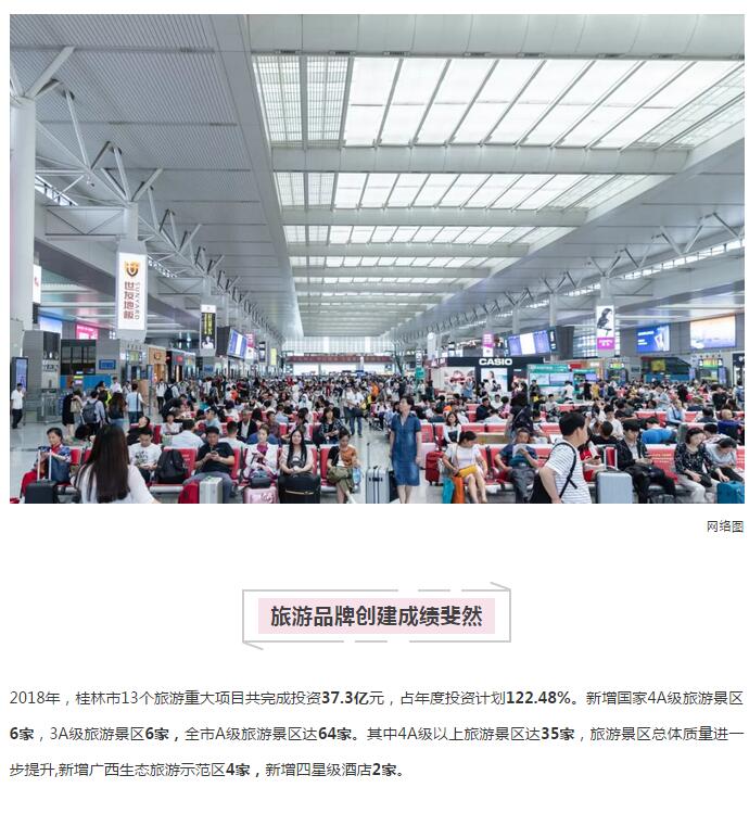 2018年,桂林接待游客數(shù)首次突破“億”人次大關(guān),旅游總消費首次突破千億元