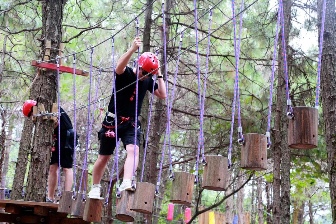 通過(guò)懸空橋梁、木樁、步道等趣味環(huán)節(jié)