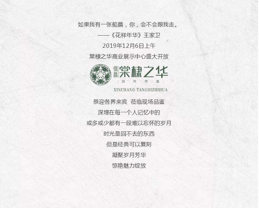 您有一封來(lái)自時(shí)光的邀請(qǐng)函!棠棣之華商業(yè)展示中心即將盛大開放